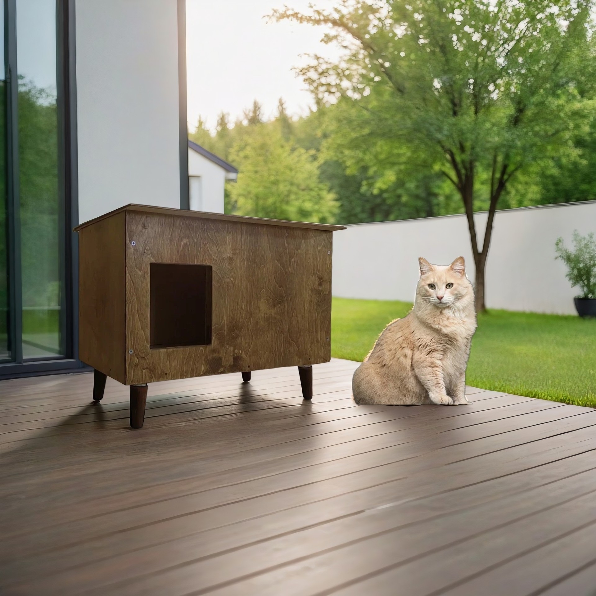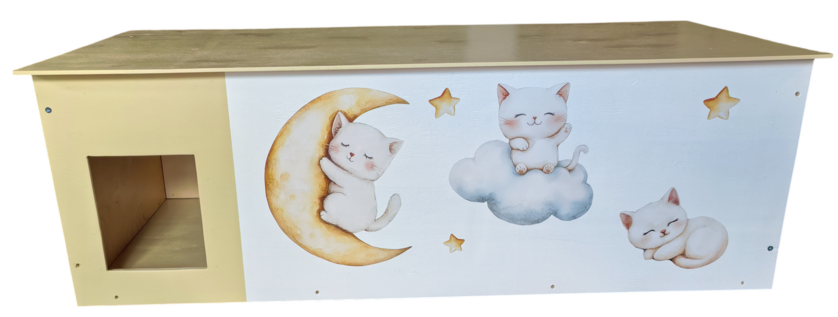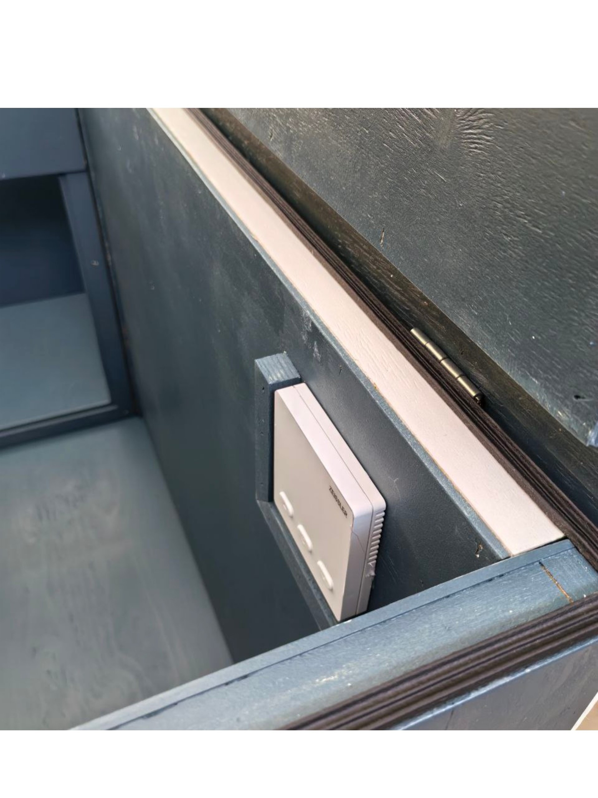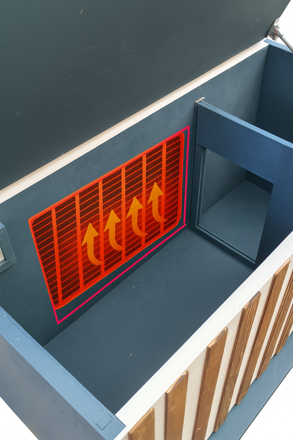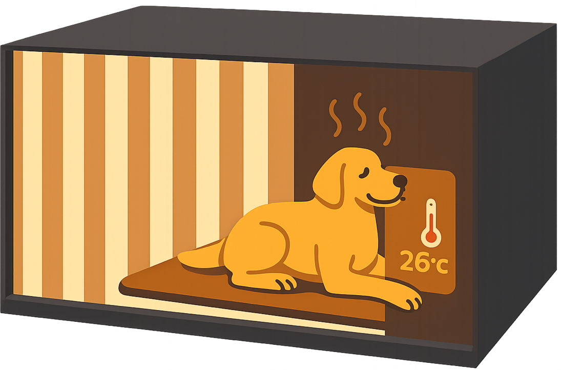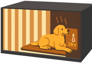 Обогреватель находится внутри стенки и нагревает воздух в Домике - 100% безопасно для питомца